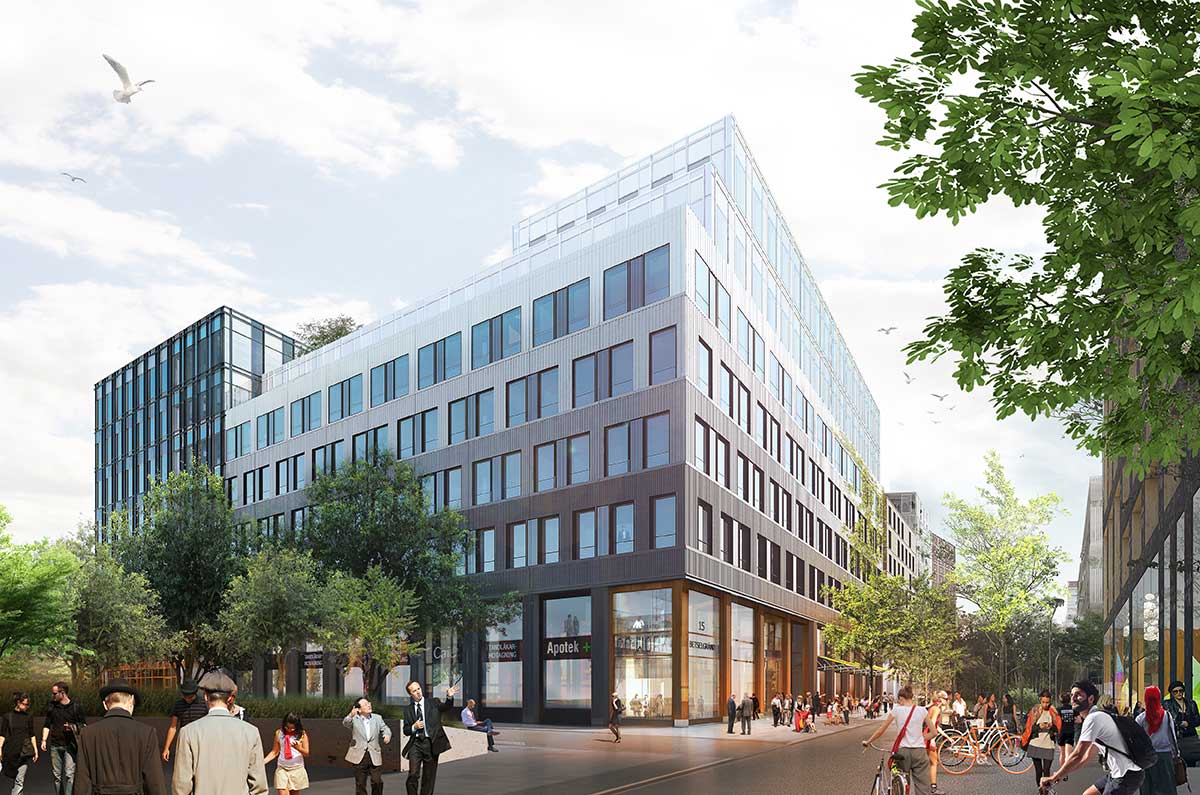 Vi har som mål att minimera miljöpåverkan på ett konkret sätt. En del av det är miljöcertifierade byggnader som uppförs på ett ansvarsfullt sätt och som sedan kan stå länge utan att behöva ersättas. En annan del är att skapa en inkluderande stadsmiljö i området, något som vi kontinuerligt undersöker för att kunna utveckla miljöer som är till gagn för människor och samhället i stort.