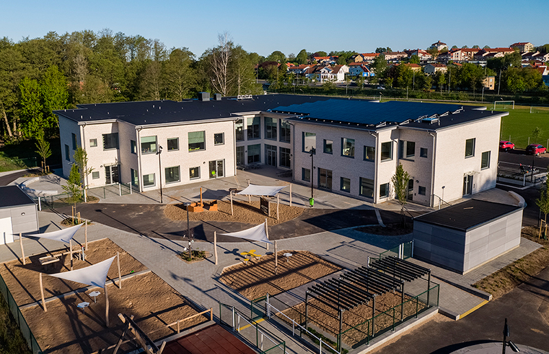 Tillsammans med kommunen har vi valt att göra alla förskolor så underhållsfria som möjligt med fasader av tegel, underslag av cementbaserade skivor, aluminiumfönster och partier. Samtliga förskolor är utrustade med tillagningskök så all mat lagas på plats.