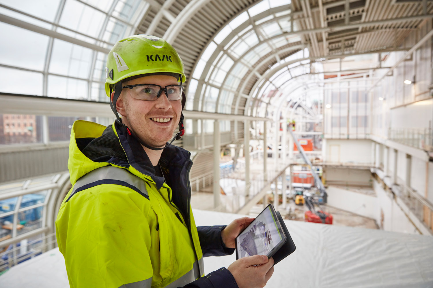 Jag heter David och jobbar som projektingenjör på Helsingborgs centralstation, som just nu genomgår en totalomvandling med bland annat ny glasfasad och en ny matdestination. Med cirka 40 000 personer som dagligen passerar på väg till och från tåg, bussar och båtar är det mycket att tänka på.