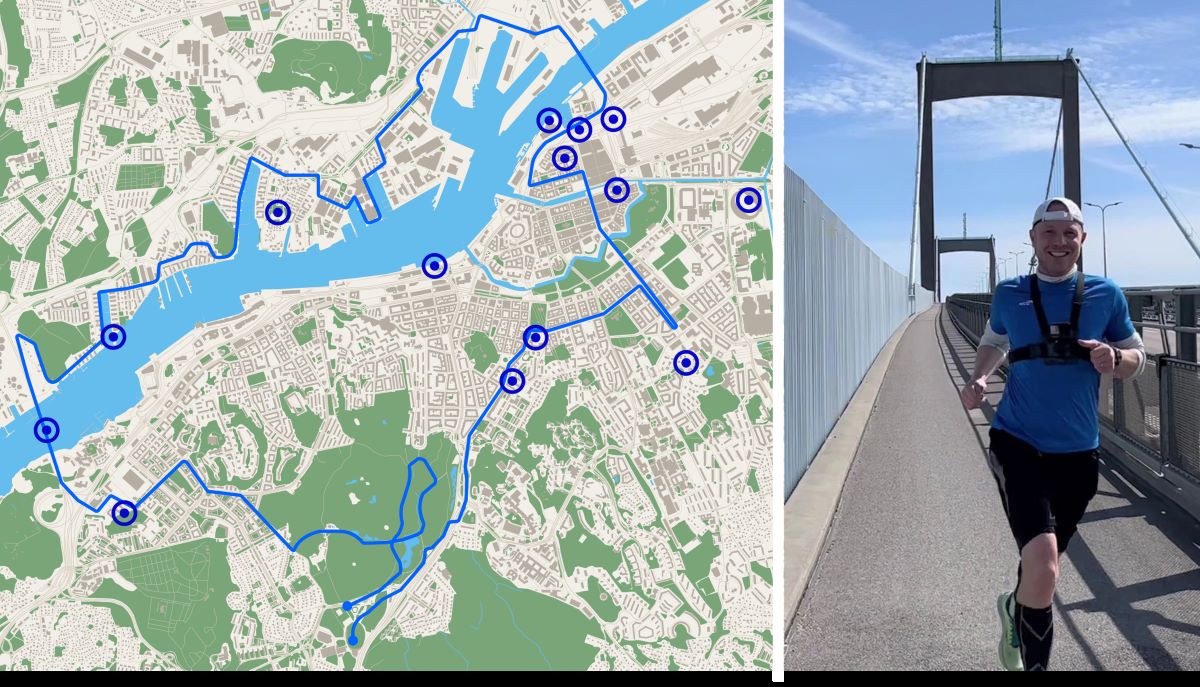 Till vardags jobbar jag som inköpschef. Då förhandlar jag priser, säkerställer att leverantörer och underentreprenörer följer lagar och regler och ser till att försörjningen av material och resurser till våra projekt flyter på. En fredag härförleden tillhörde undantagen. Då sprang jag Göteborgsvarvets sträckning med en go-pro i en sele runt magen och blev filmad under tiden.