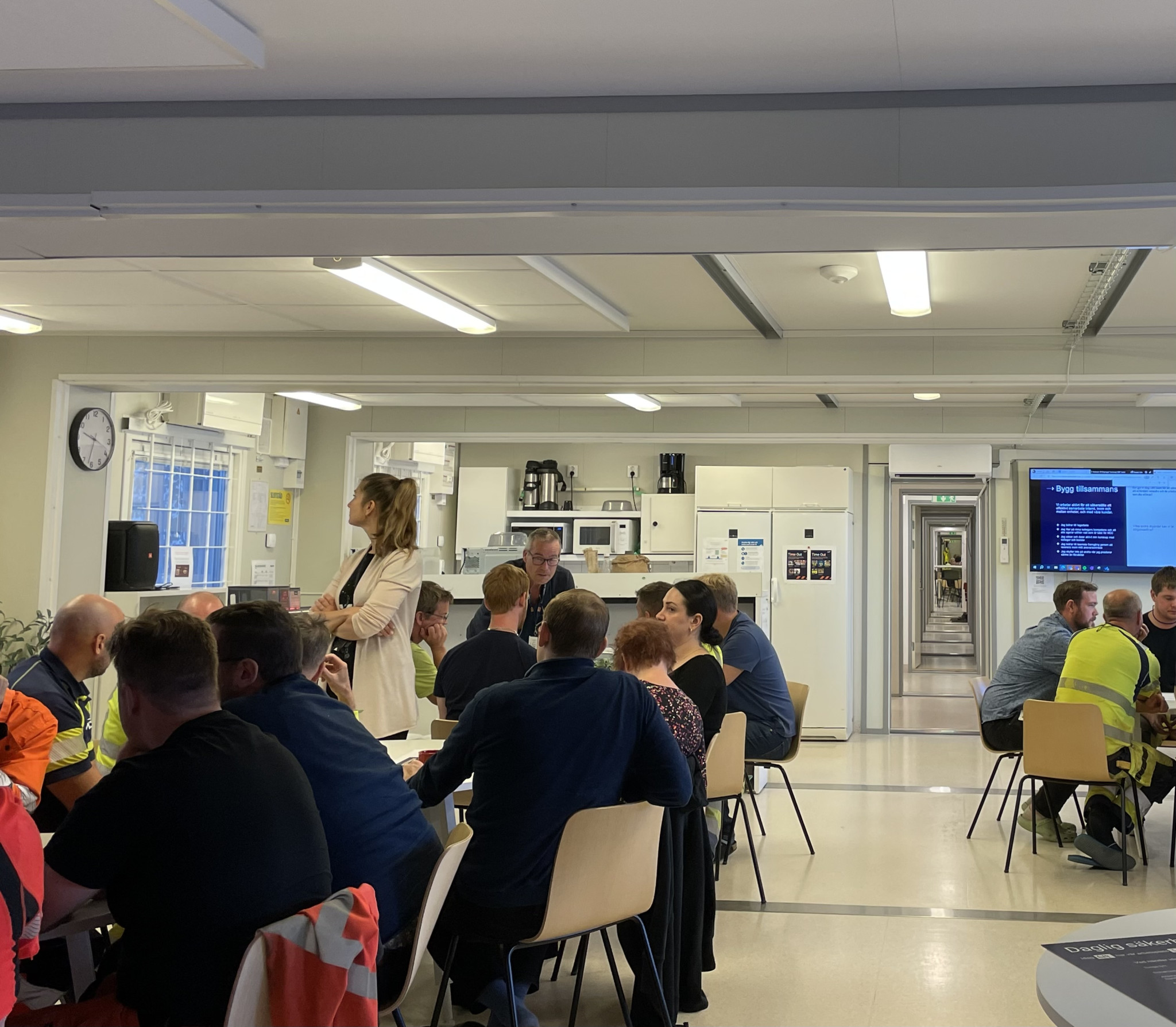 Bild från 6 september – NCCs Årliga Awareness Day. Det betyder att alla NCC:s arbetsplatser stannar upp kl. 9 första onsdagen i september för att diskuterar ett utvalt ämne inom arbetsmiljö och årets tema var säkerhetskultur.