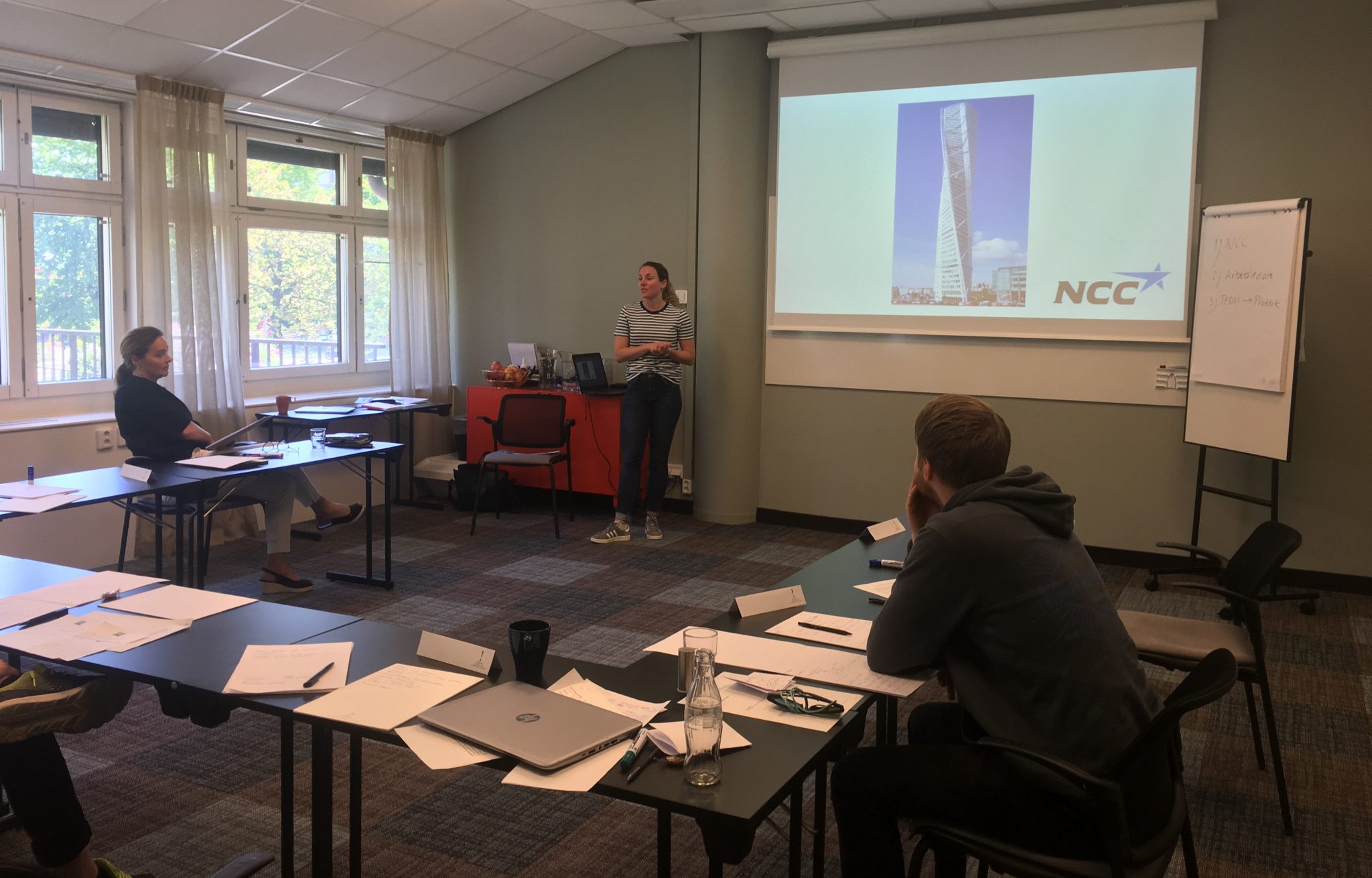 Jag har hamnat i den ovan nämnda situationen några gånger, den där nervositeten är oftast bara bra för att prestera och för att veta att jag gör något som är betydelsefullt för mig. Men när nervositeten tar över och jag börjar ifrågasätta om jag verkligen har gjort nog då är det bra att ha verktyg som kan hantera känslan. Under vecka har jag och hälften av traineerna gått en kurs med Jana Söderberg i att presentera och sälja en idé, där vi har fått handfasta tips i presentationsteknik och hantering av nervositet. (Vår andra hälft av traineerna gick kursen förra veckan)