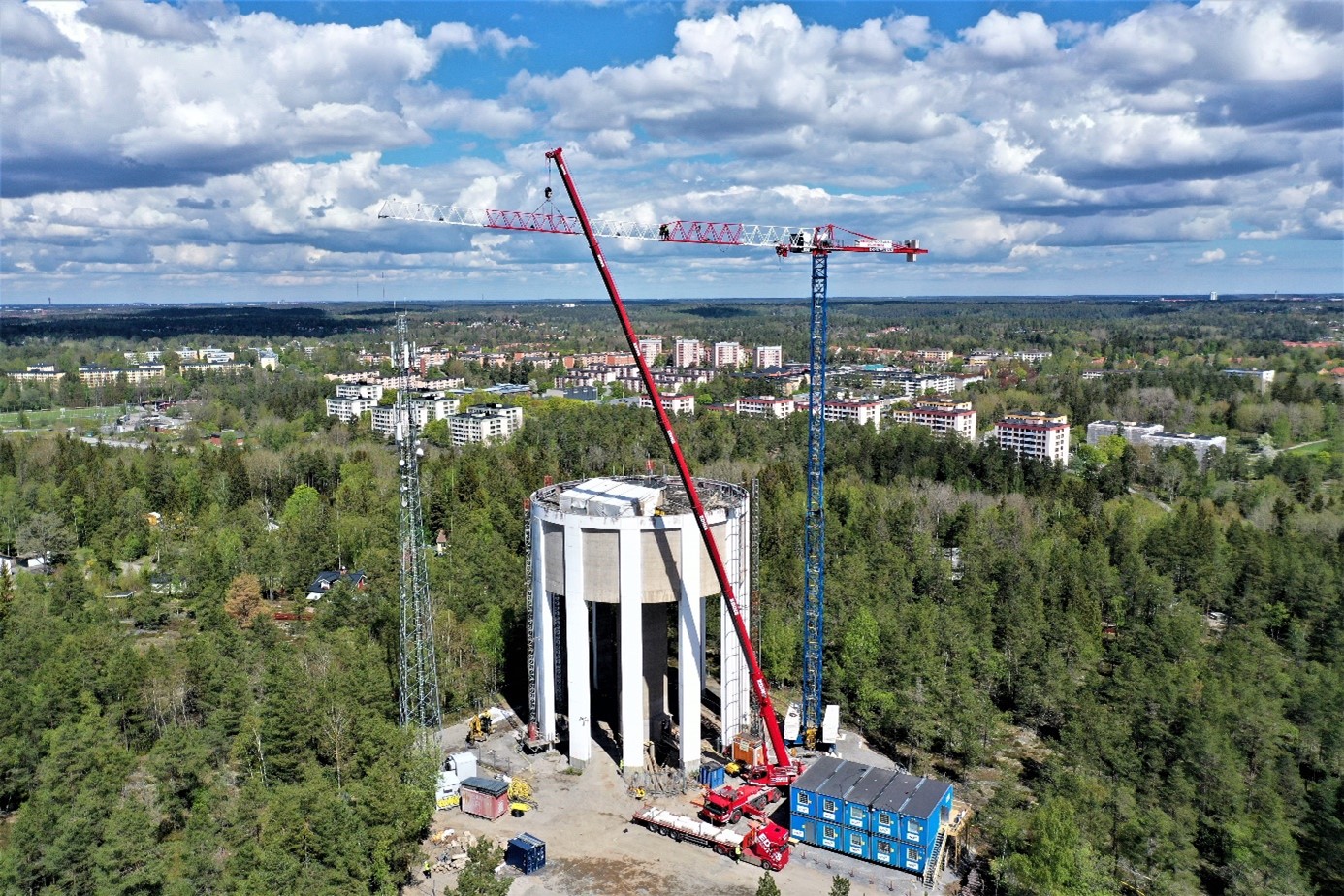 En annan utmaning med projektet är att en stor del av arbetena sker på hög höjd. Vattentornet ligger högt beläget på en kulle och är i sig högt för att möjliggöra transport av dricksvatten ut till hushållen. Höjden innebär många steg upp och ned i trapptorn. Det krävs också lösningar för att möjliggöra rivning, armering, formning och gjutning högt ovanför marken.